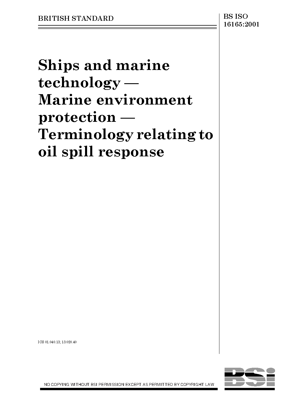 Ships and marine technology. Marine environment protection. Terminology relating to oil spill response