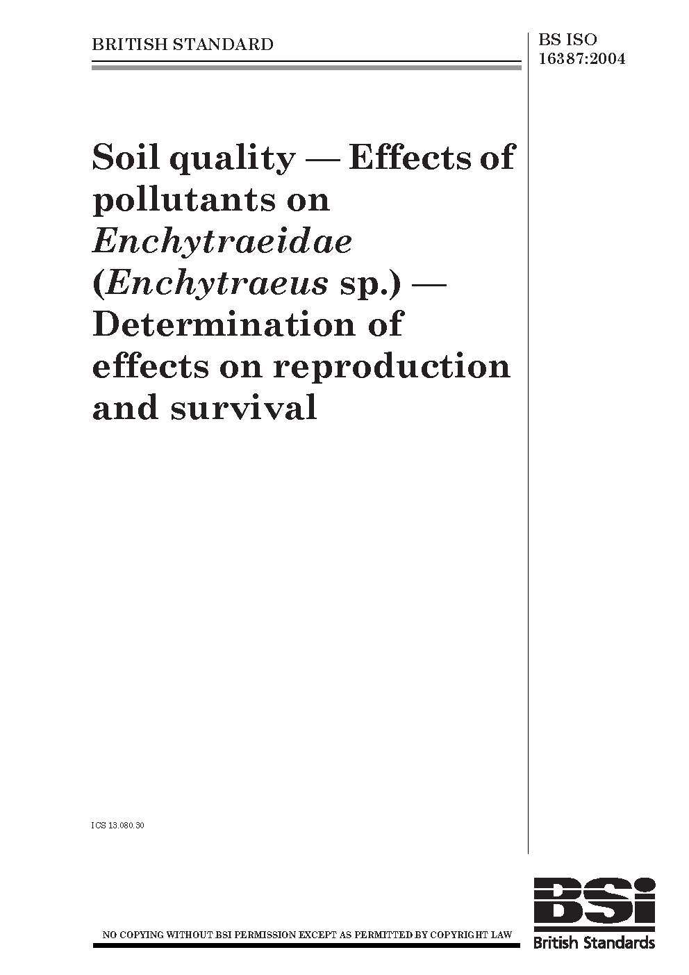 Soil quality. Effects of pollutants on Enchytraeidae (Enchytraeus sp.). Determination of effects on reproduction and survival