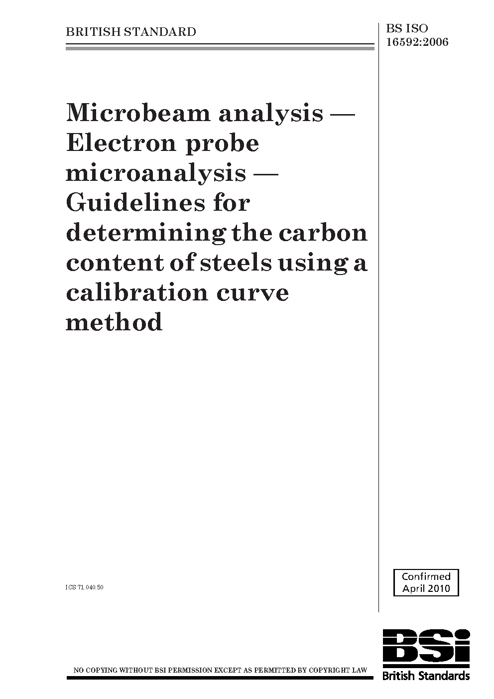 Spectroscopy;Specimen preparation;Measurement characteristics;Electron beams;Microanalysis;Determination of content;Calibration;Chemical analysis and testing;Steels;Carbon;X-rays