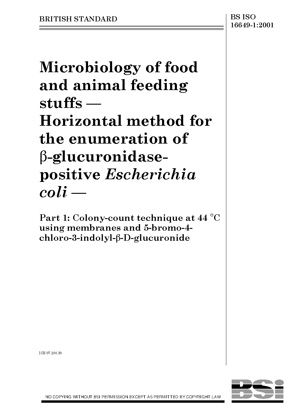 Microbiology of the food chain. Horizontal method for enumeration beta-glucuronidase-positive Escherichia coli Colony-count technique at 44 ° C using membranes and 5-bromo-4-chloro-3-indolyl beta-D-glucuronide