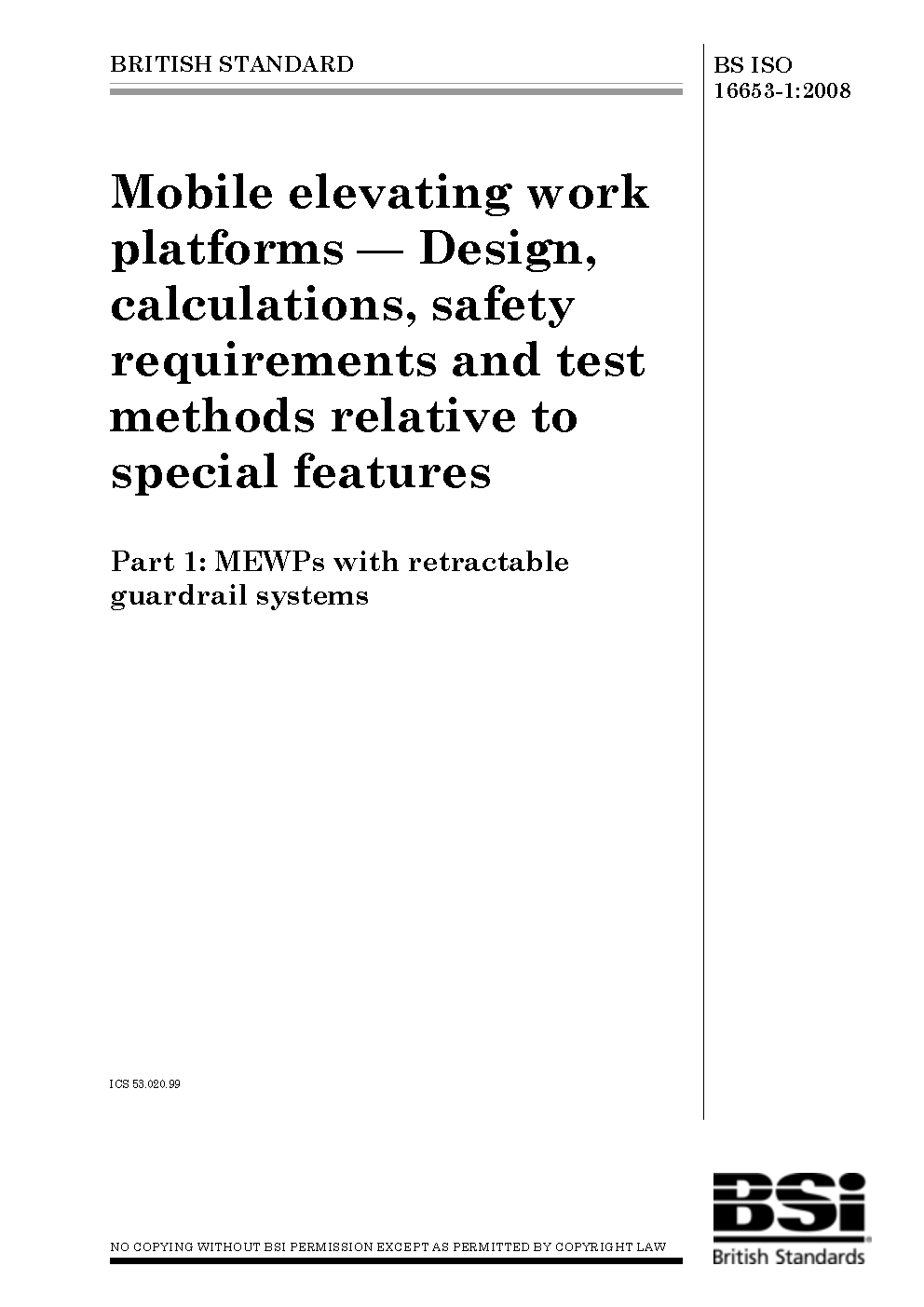 Mobile elevating work platforms. Design, calculations, safety requirements and test methods relative to special features MEWPs with retractable guardrail systems