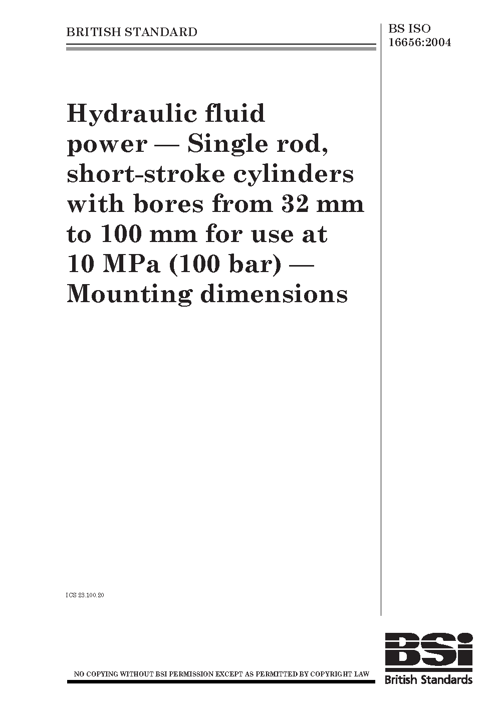 Hydraulic fluid power. Single rod, short-stroke cylinders with bores from 32 mm to 100 mm for use at 10 MPa (100 bar). Mounting dimensions