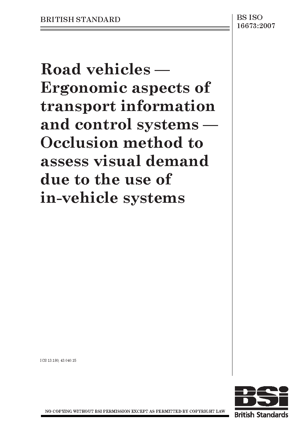 Road vehicles. Ergonomic aspects of transport information and control systems. Occlusion method to assess visual demand due to the use of in-vehicle systems