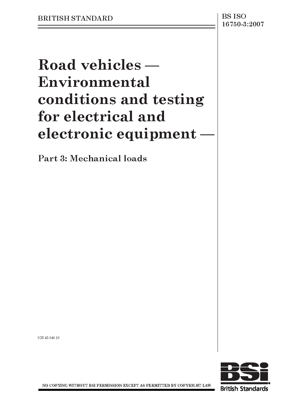 Road vehicles. Environmental conditions and testing for electrical electronic equipment Mechanical loads