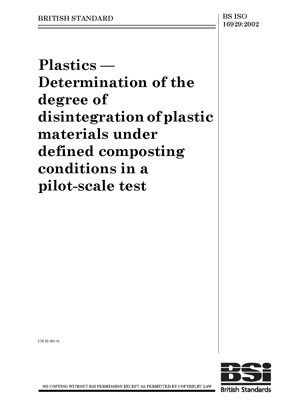 Plastics. Determination of the degree of disintegration of plastic materials under defined composting conditions in a pilot-scale test