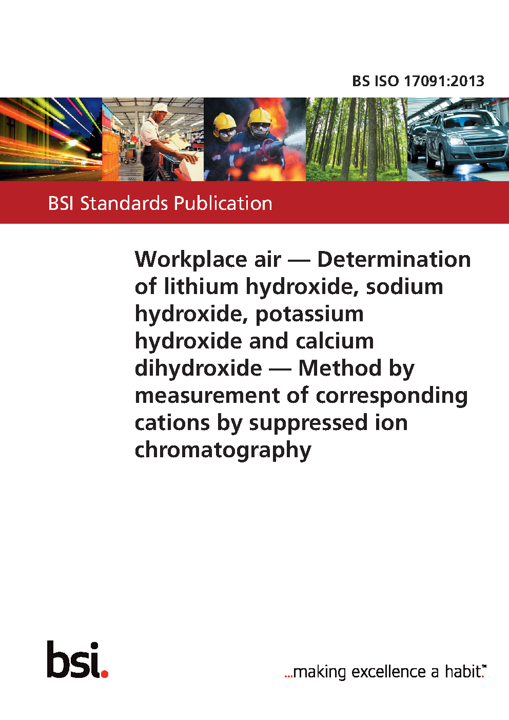 Workplace air. Determination of lithium hydroxide, sodium hydroxide, potassium hydroxide and calcium dihydroxide. Method by measurement of corresponding cations by suppressed ion chromatography