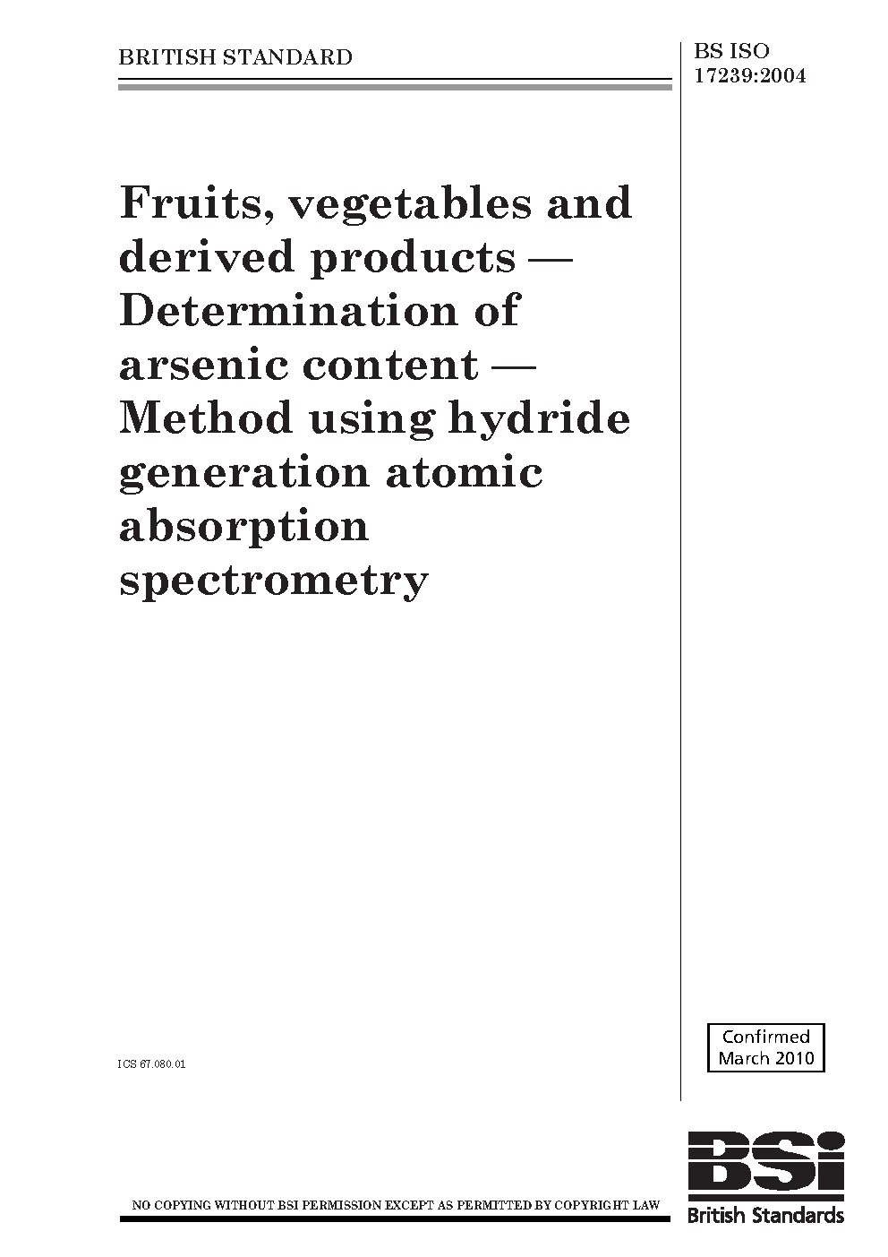 Food products;Food testing;Determination of content;Trace element analysis;Chemical analysis and testing;Arsenic;Spectrophotometry;Atomic absorption spectrophotometry