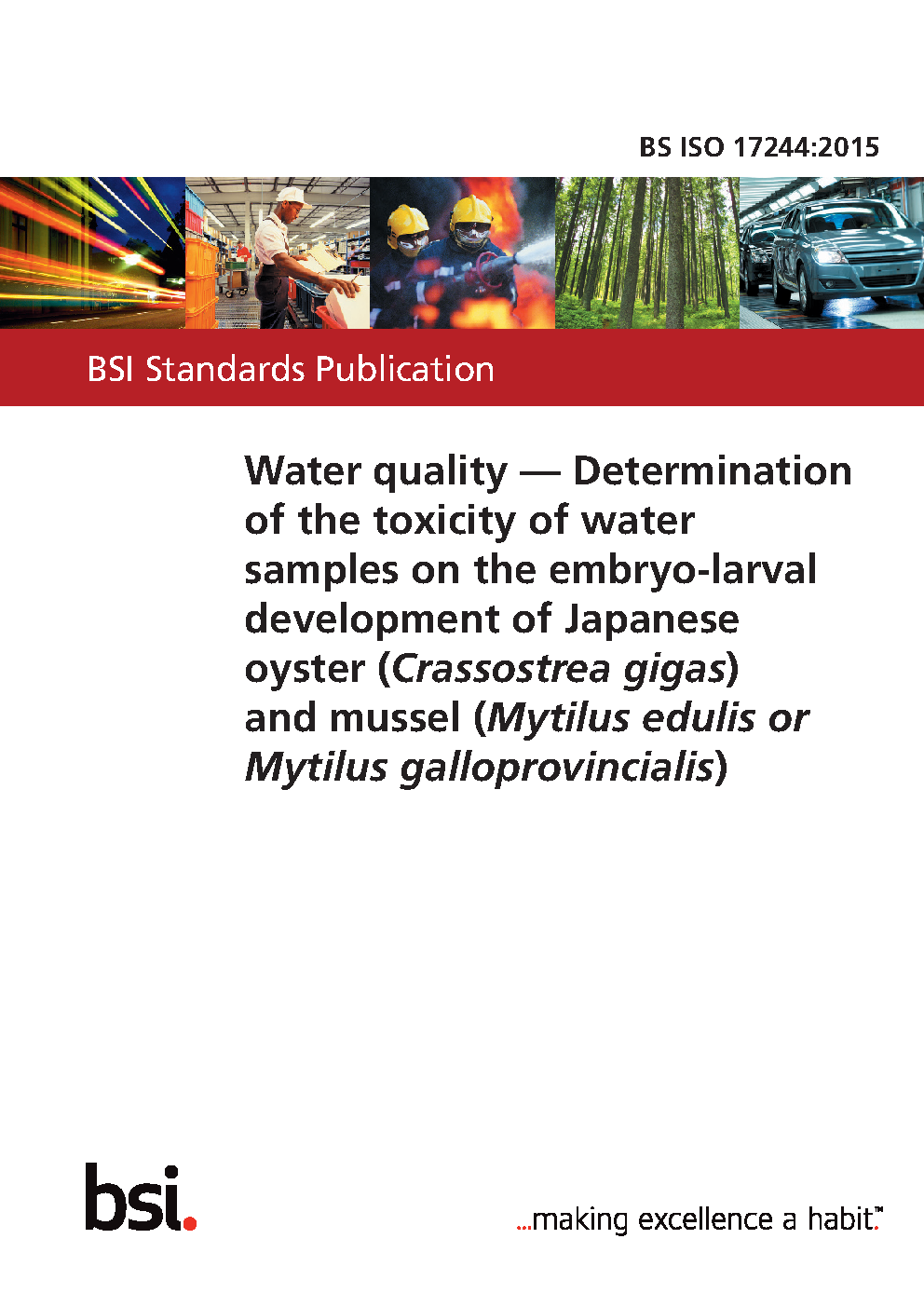 Water quality. Determination of the toxicity of water samples on the embryo-larval development of the Japanese oyster (Magallana gigas) and the blue mussel (Mytilus edulis or M. galloprovincialis)