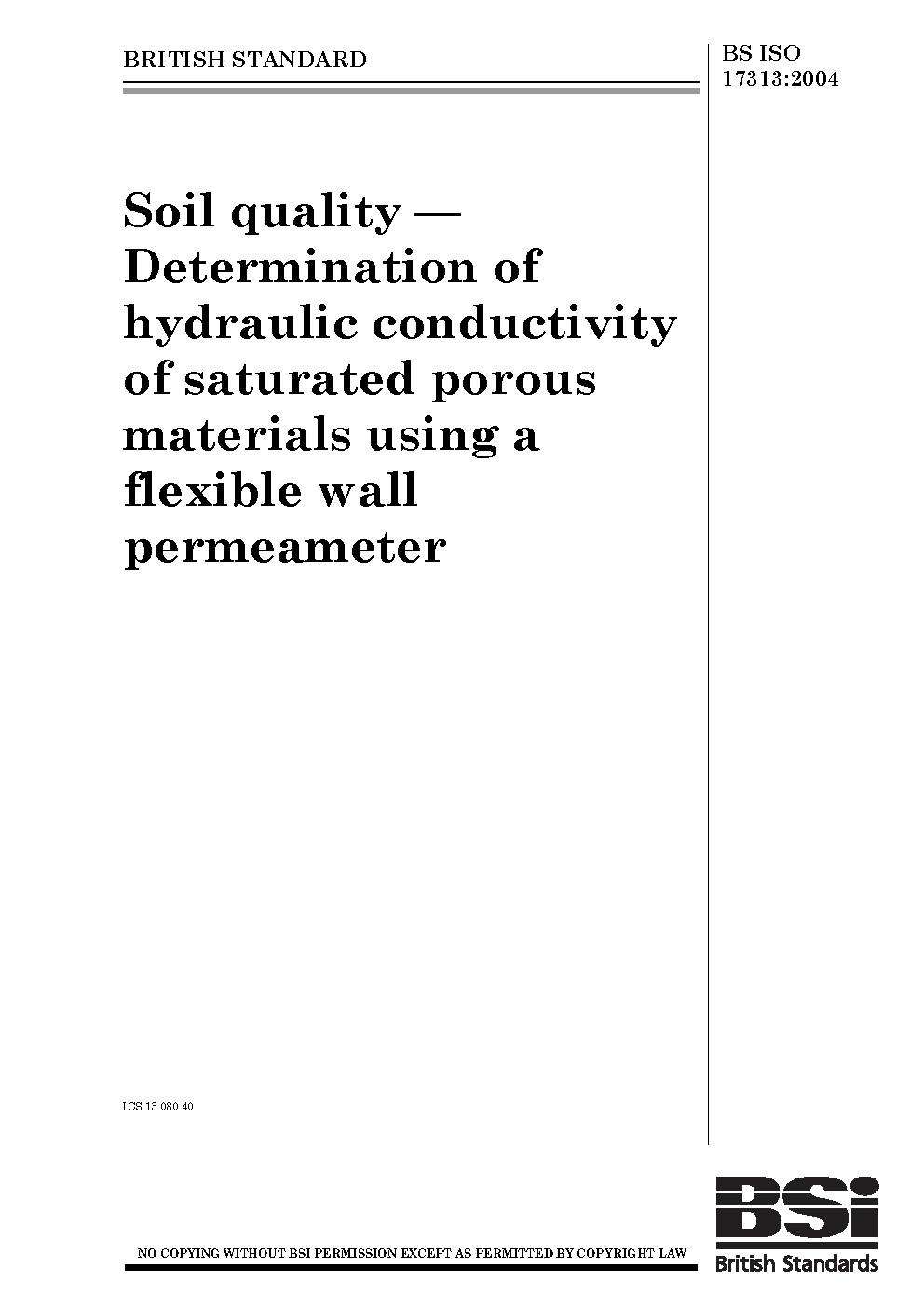 Soil quality. Determination of hydraulic conductivity of saturated porous materials using a flexible wall permeameter