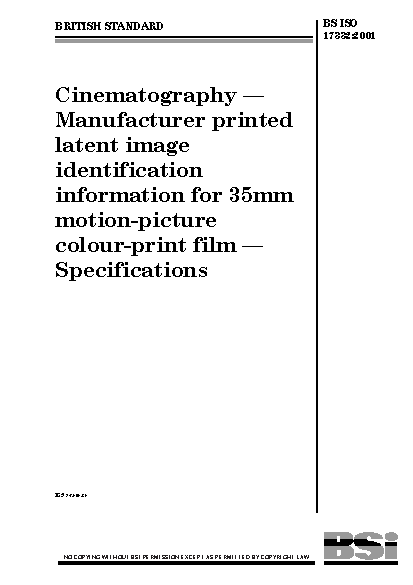 Cinematography. Manufacturer printed latent image identification information for 35mm motion-picture colour-print film. Specifications
