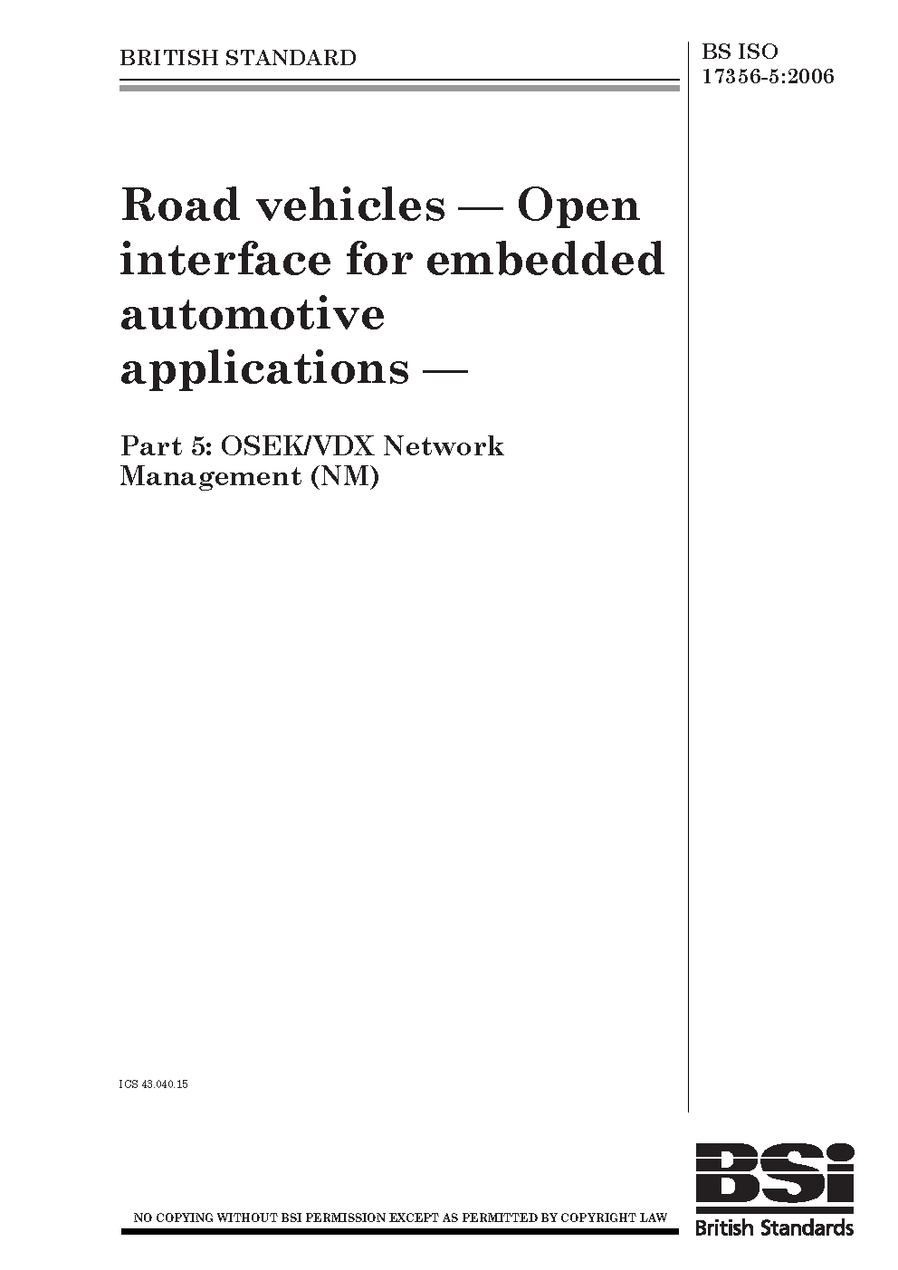 Road vehicles. Open interface for embedded automotive applications OSEK/VDX Network Management (NM)