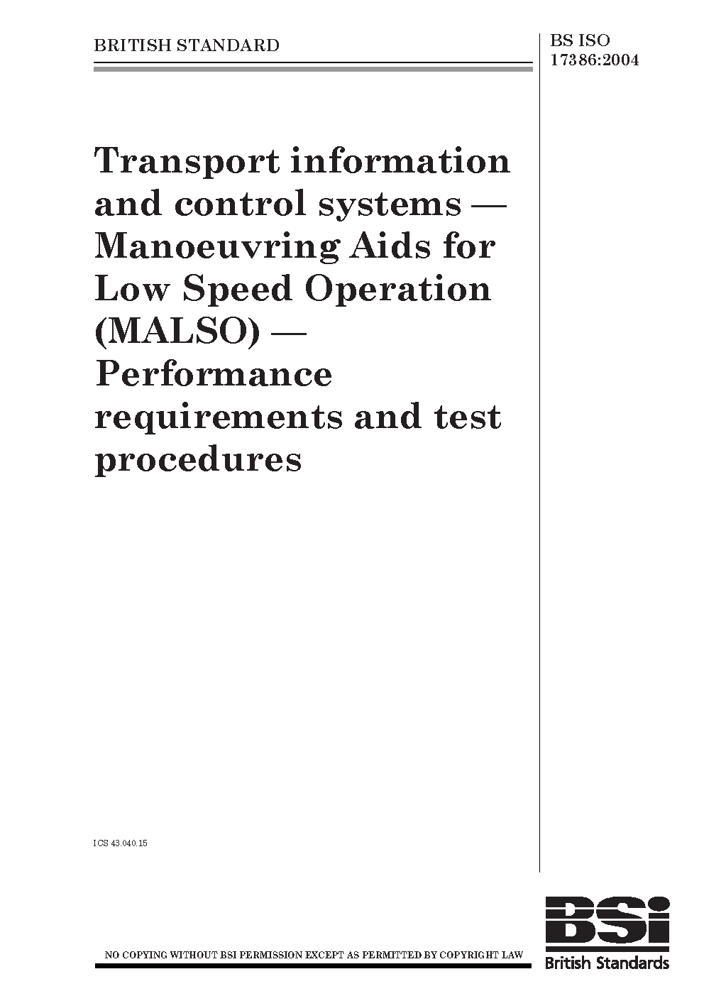Transport information and control systems. Manoeuvring aids for low speed operation (MALSO). Performance requirements and test procedures
