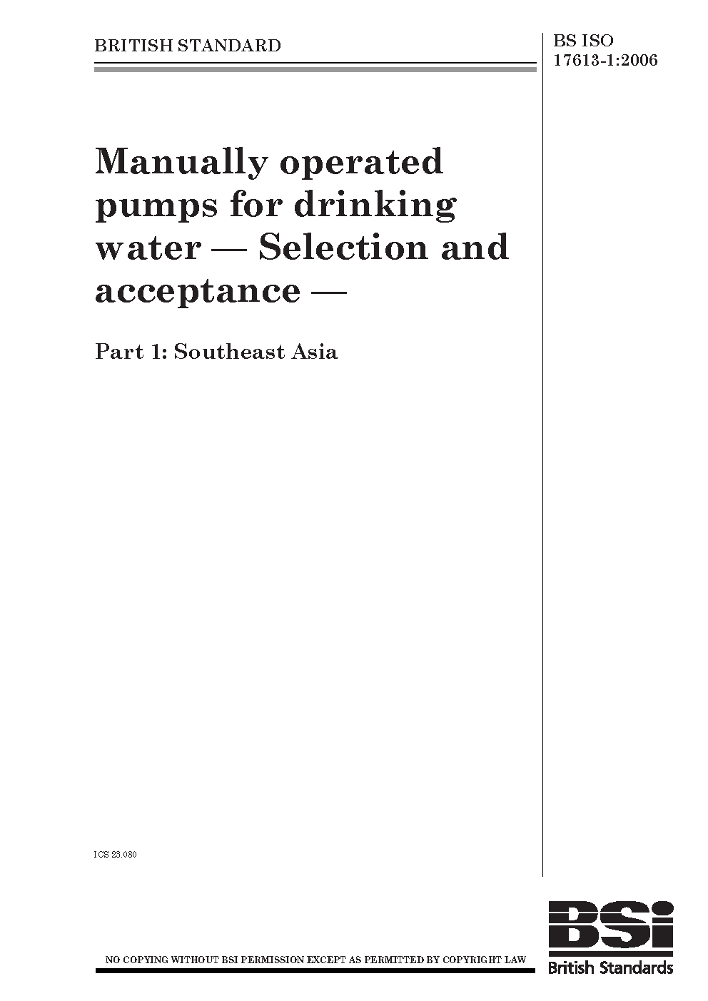 Manually operated pumps for drinking water. Selection and acceptance Southeast Asia