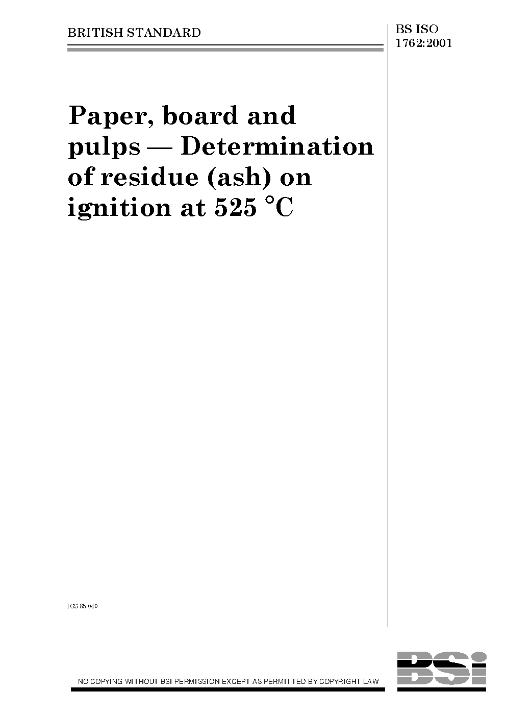 Paper, board, pulps and cellulose nanomaterials. Determination of residue (ash content) on ignition at 525 °C