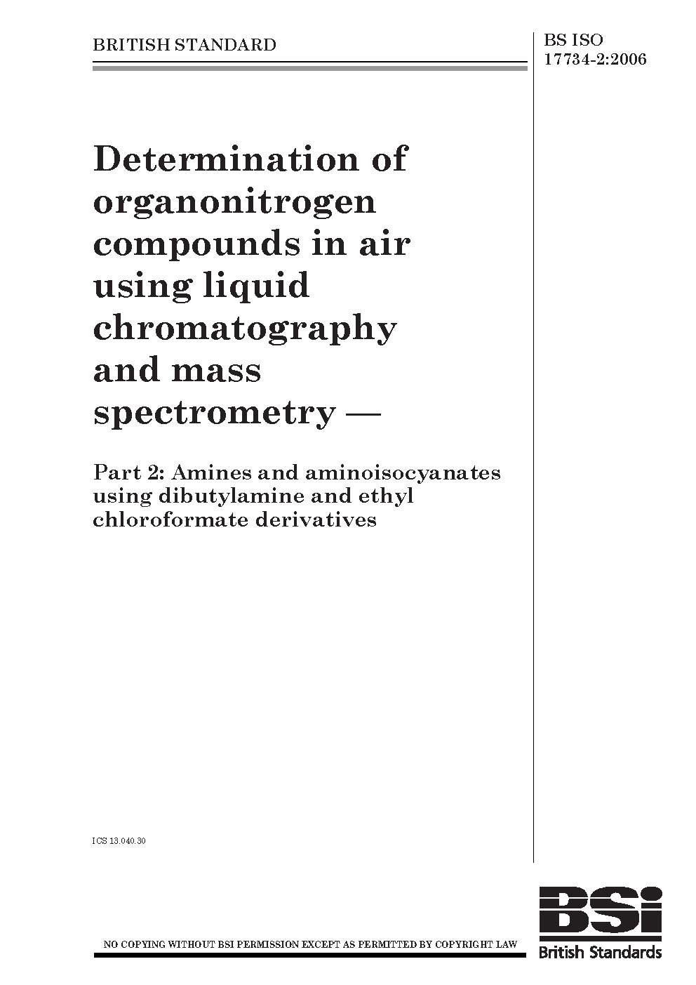 Determination of organonitrogen compounds in air using liquid chromatography and mass spectrometry Amines aminoisocyanates dibutylamine ethyl chloroformate derivatives