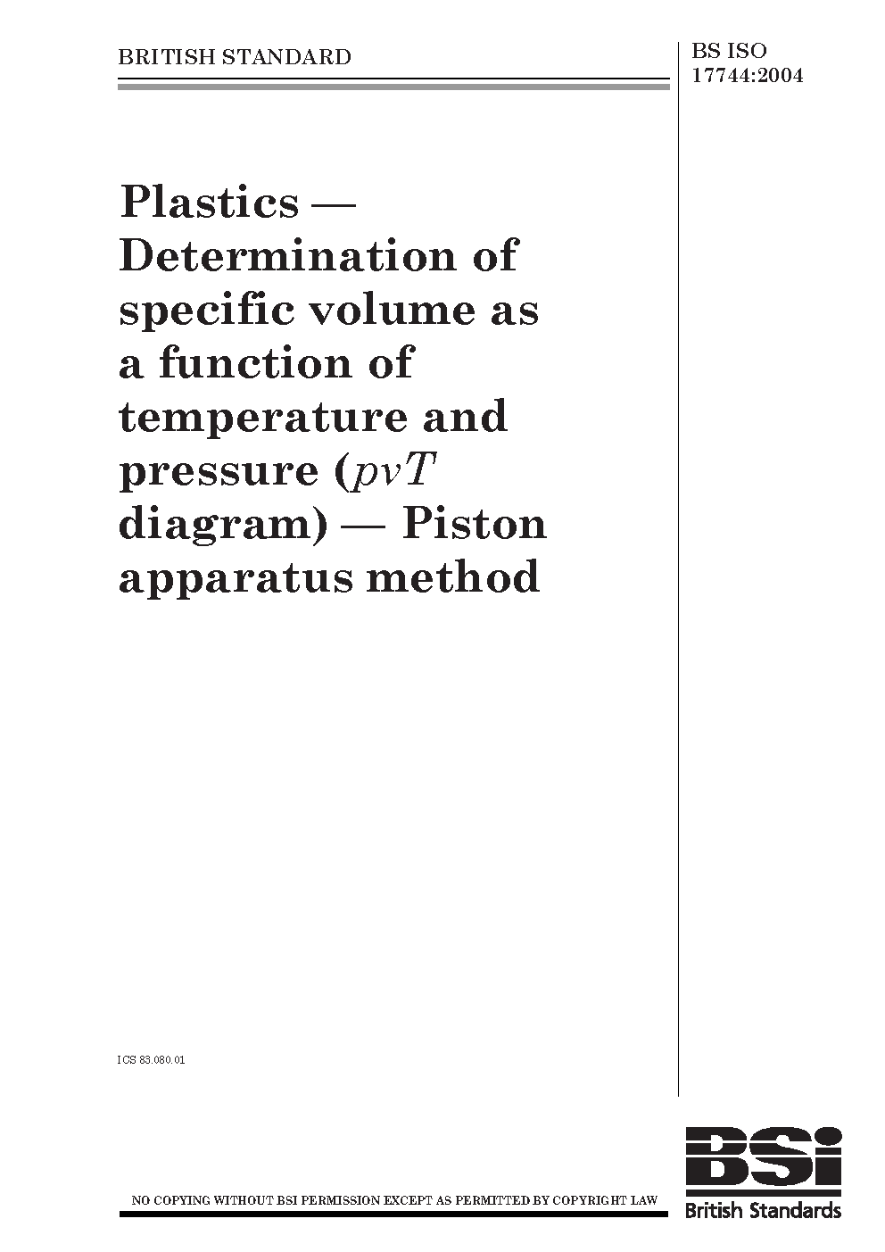 Plastics. Determination of specific volume as a function of temperature and pressure (pVT diagram). Piston apparatus method