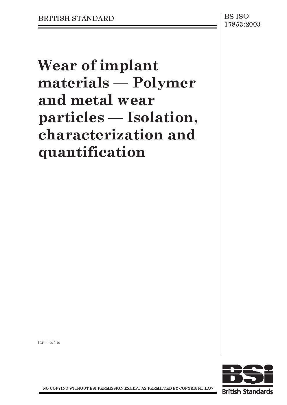 Prosthesis;Wear;Determination of content;Metals;Orthopaedic equipment;Polymers;Sampling methods;Pathology;Bones;Ceramics;Prosthetic devices;Particulate materials;Implants (surgical);Particle size distribution;Medical equipment;Joints (anatomy);Surgery;Chemical analysis and testing
