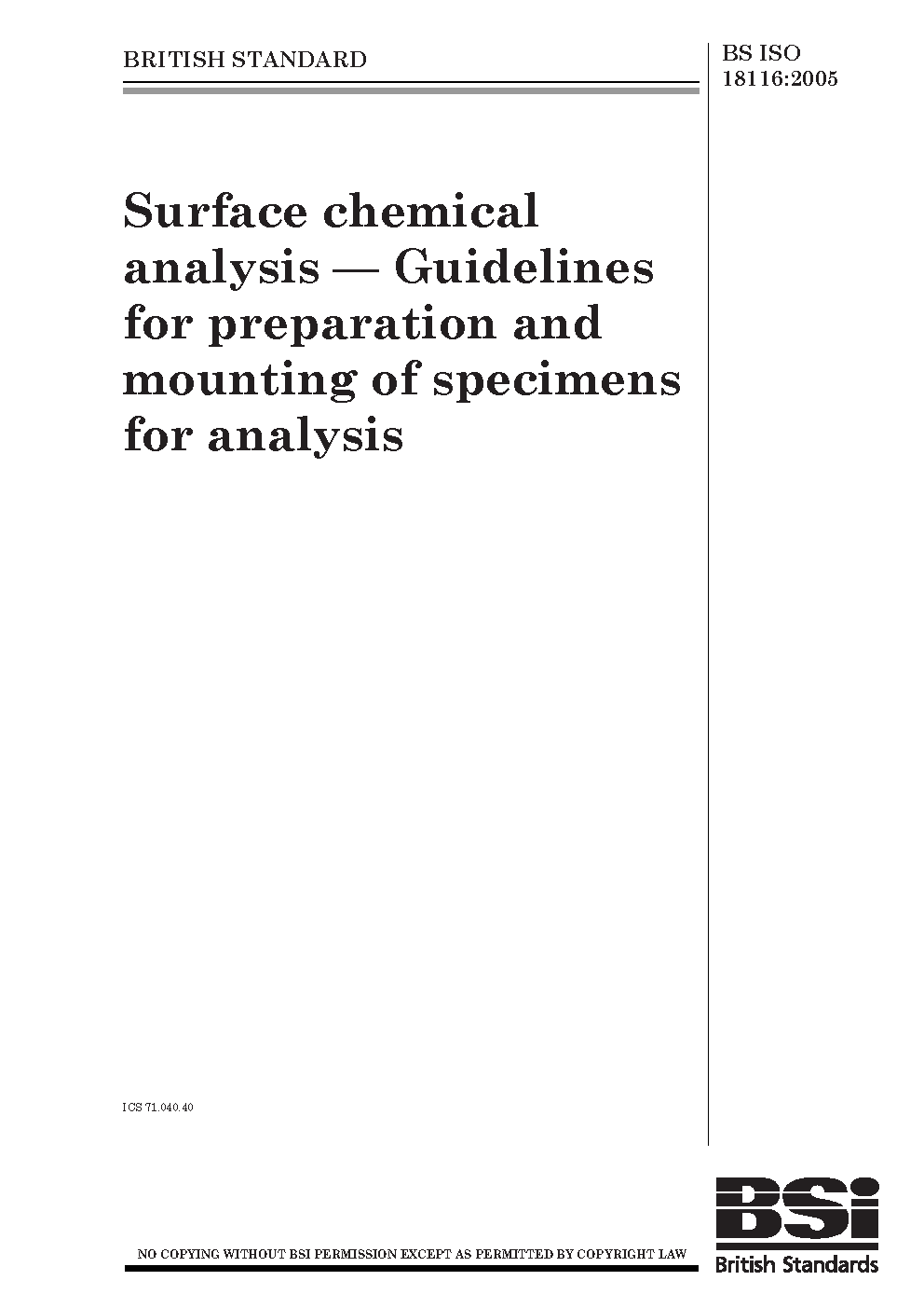 Surface chemical analysis. Guidelines for preparation and mounting of specimens for analysis