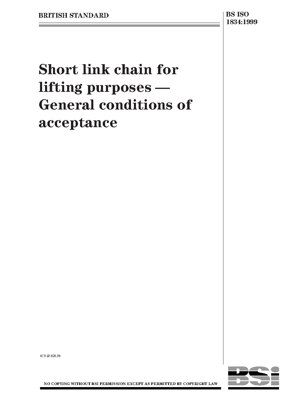 Short link chain for lifting purposes. General conditions of acceptance