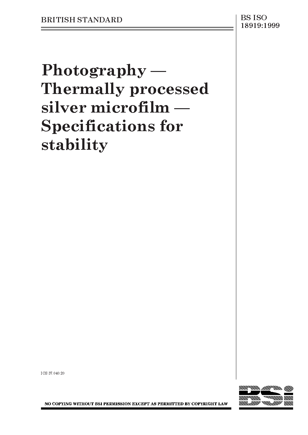 Stability;Control samples;Specimen preparation;Ageing tests;Optical measurement;Accelerated testing;pH measurement;Hazards;Storage;Volumetric analysis;Image distortion;Compositional tolerances;Microfilm;Elongation at fracture;Equations;Thermal stability;Test specimens;Safety measures;Tensile testing;Silver organic compounds;Photographic images;Determination of content;Bibliography;Chemical analysis and testing;Acids;Thermal properties of materials;Tensile stress;Testing conditions;Photography;Adhesion tests;Chemical composition;Marking;Photographic film