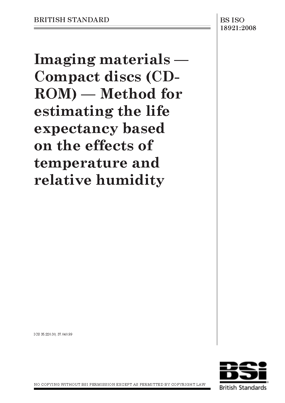 Imaging materials. Compact discs (CD-ROM). Method for estimating the life expectancy based on the effects of temperature and relative humidity