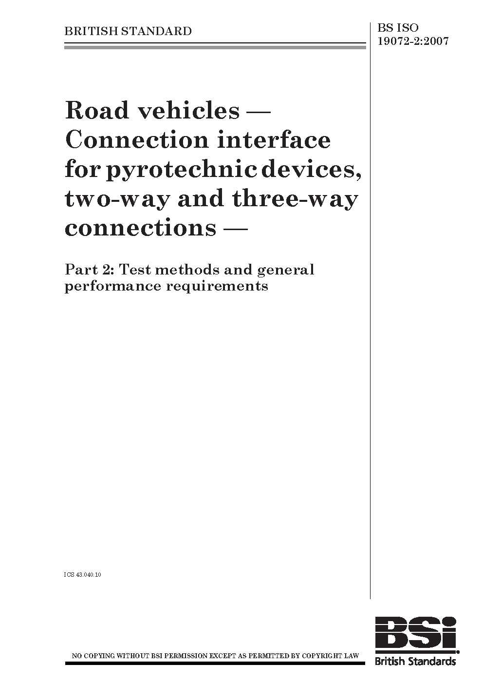 Road vehicles. Connection interface for pyrotechnic devices, two-way and three-way connections Test methods general performance requirements