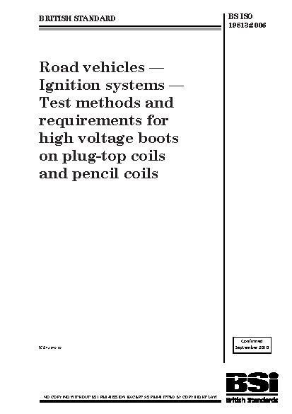 Road vehicles. Ignition systems. Test methods and requirements for high voltage boots on plug-top coils and pencil coils