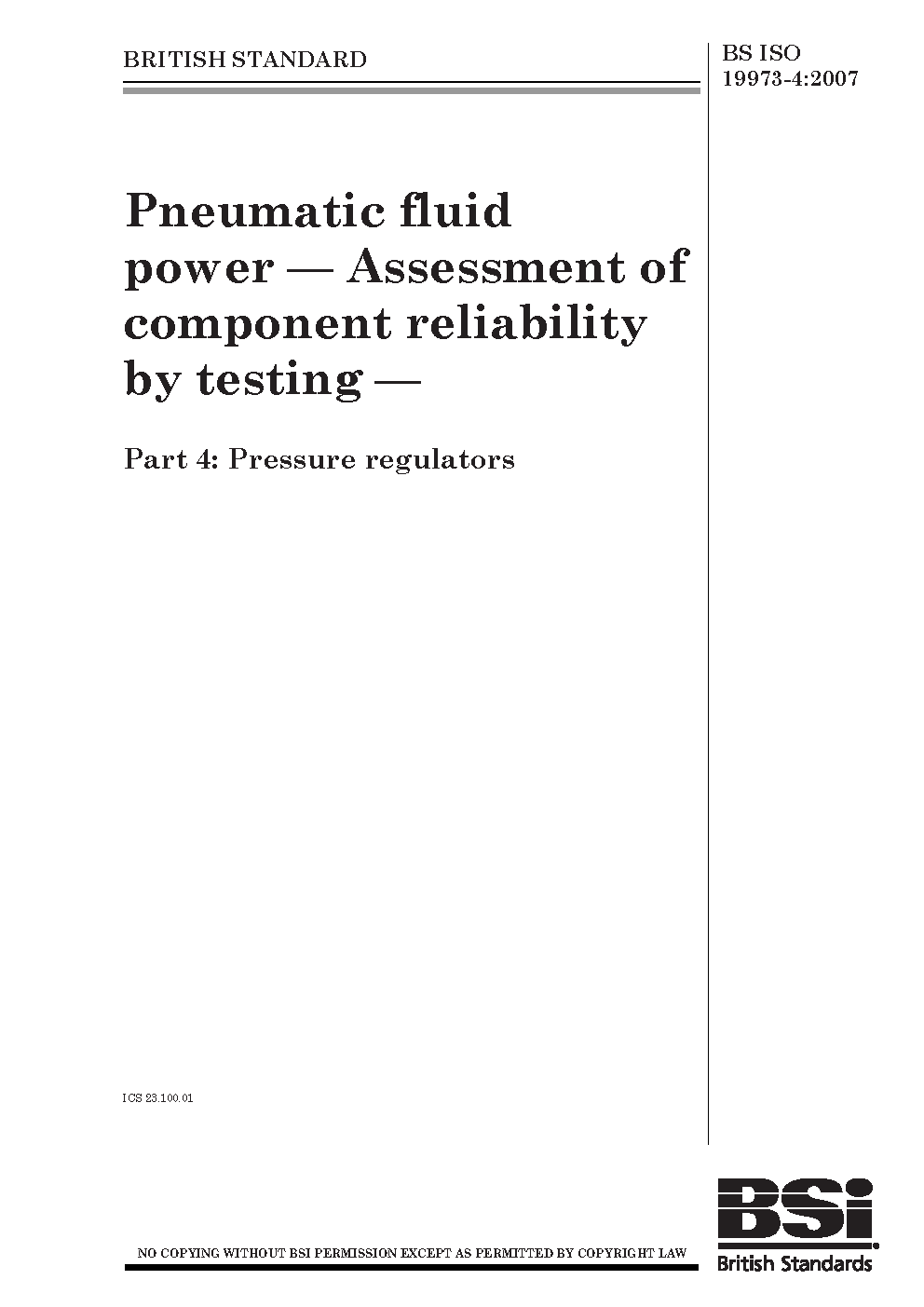 Pneumatic fluid power. Assessment of component reliability by testing Pressure regulators