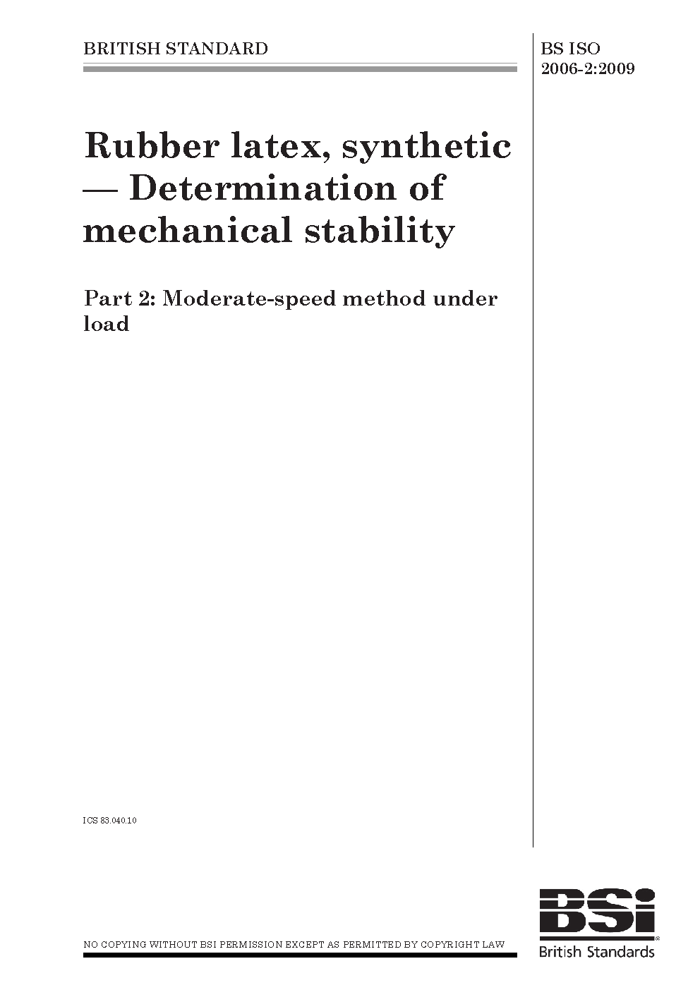 Rubber latex, synthetic. Determination of mechanical stability Moderate-speed method under load
