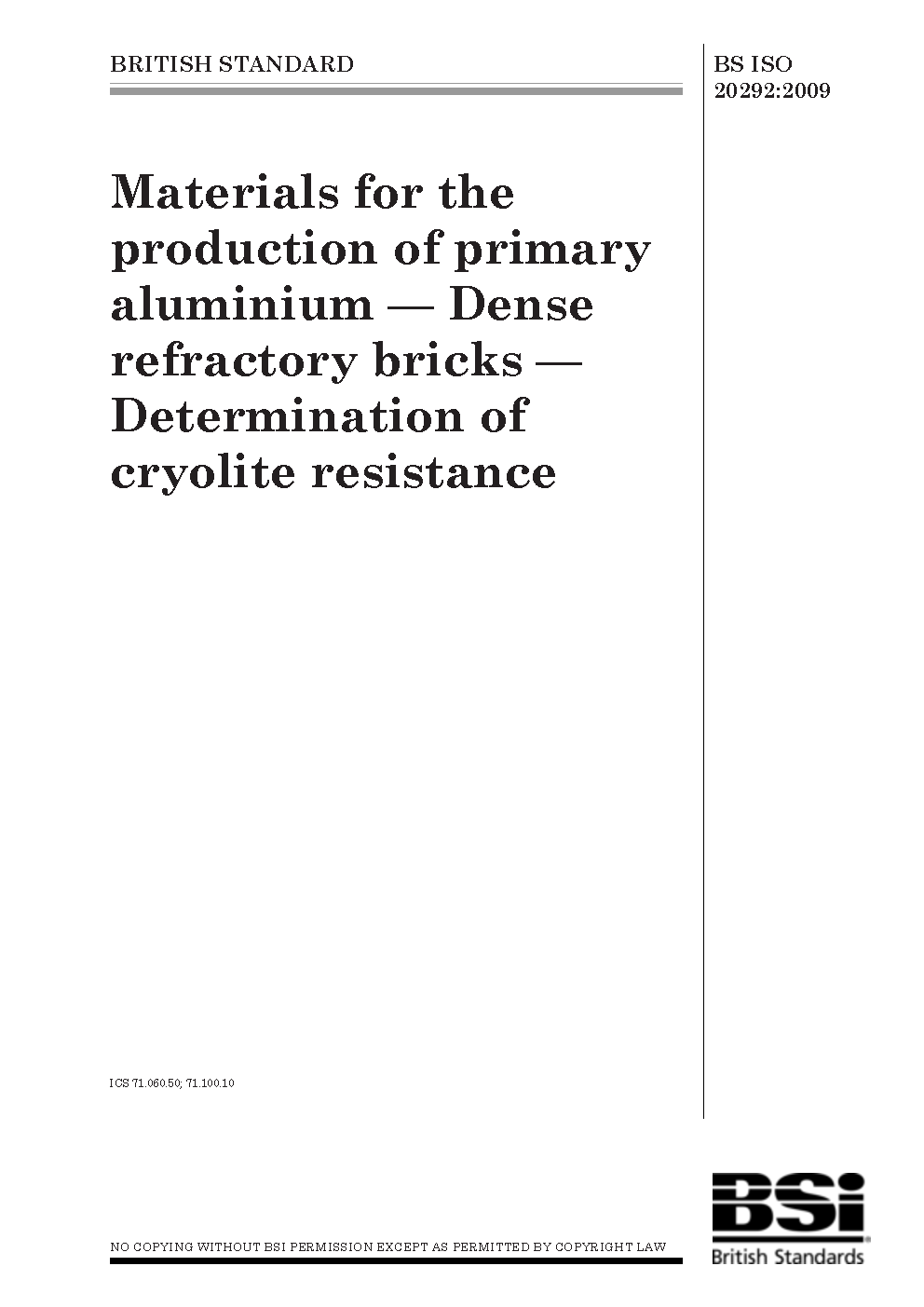 Raw materials;Chemical-resistance tests;Thermal testing;Cryolite;Refractory bricks;Fluorides;Aluminium;Sodium inorganic compounds;Visual inspection (testing);Production materials