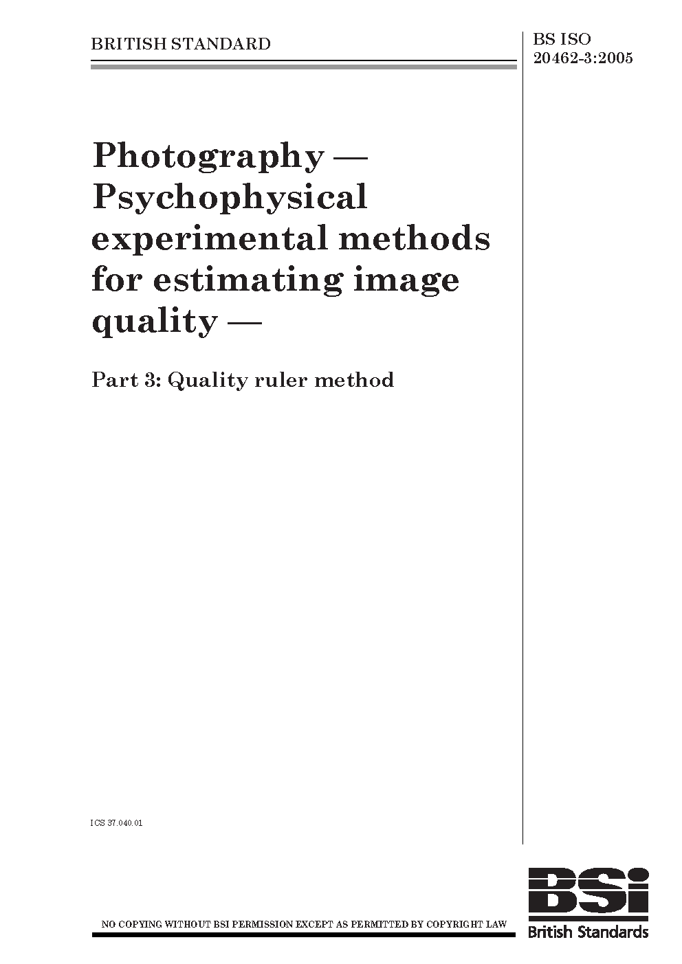 Photography. Psychophysical experimental methods for estimating image quality Quality ruler method