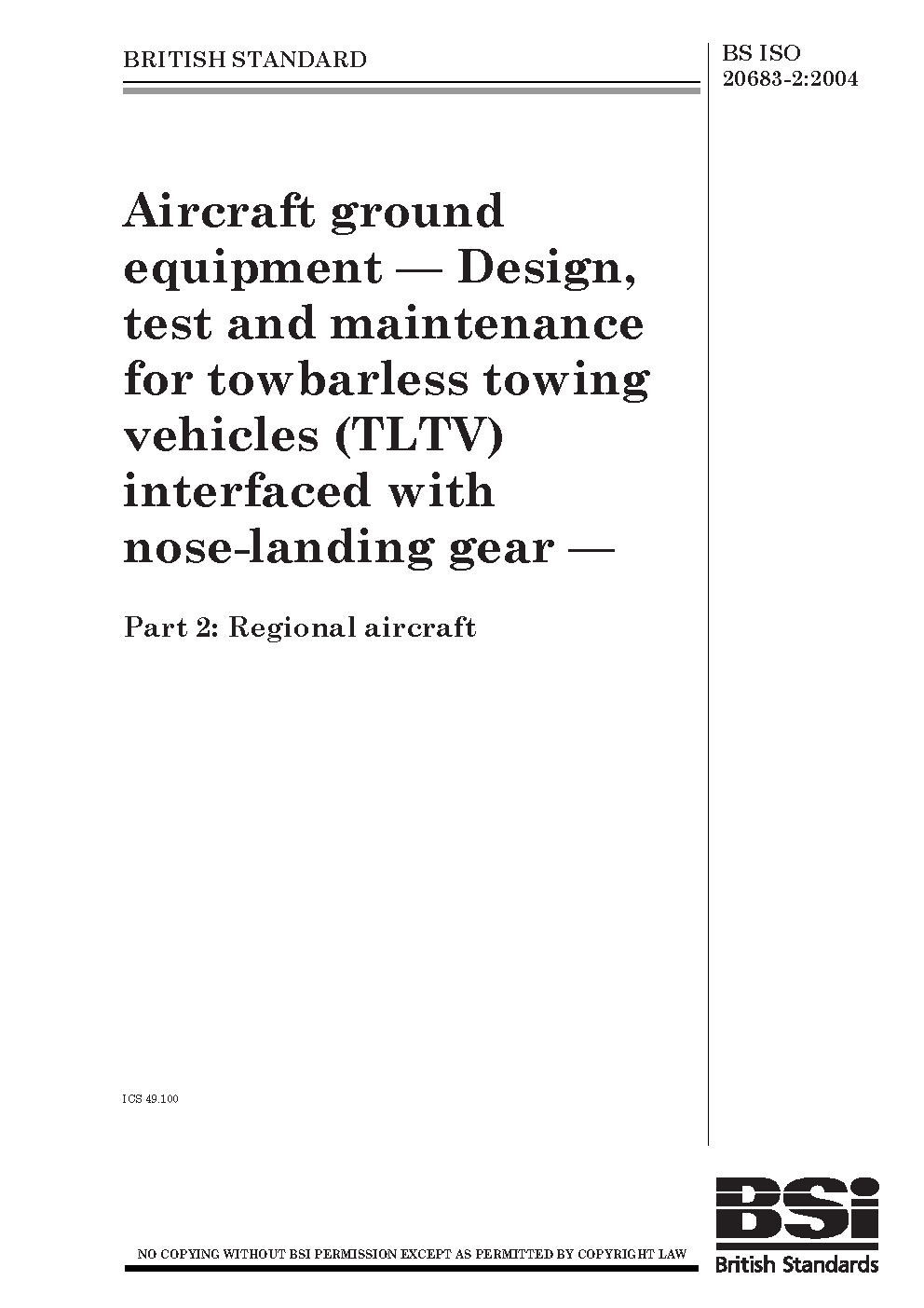 Aircraft ground equipment. Design, testing and maintenance requirements for nose gear towbarless towing vehicle (TLTV) Regional aircraft