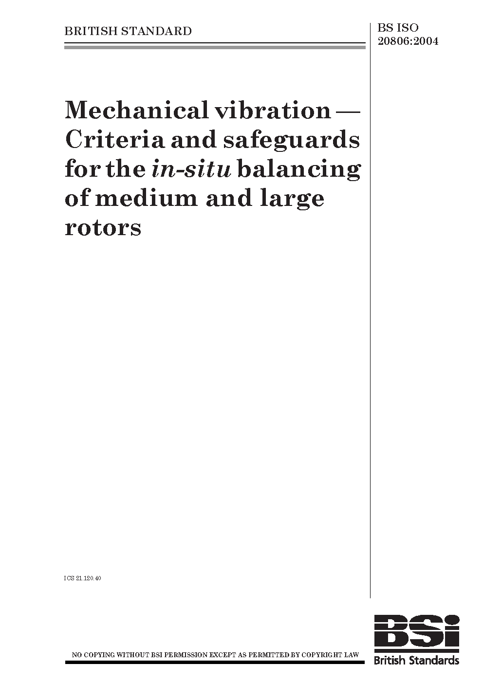 Mechanical vibration. Criteria and safeguards for the in-situ balancing of medium and large rotors