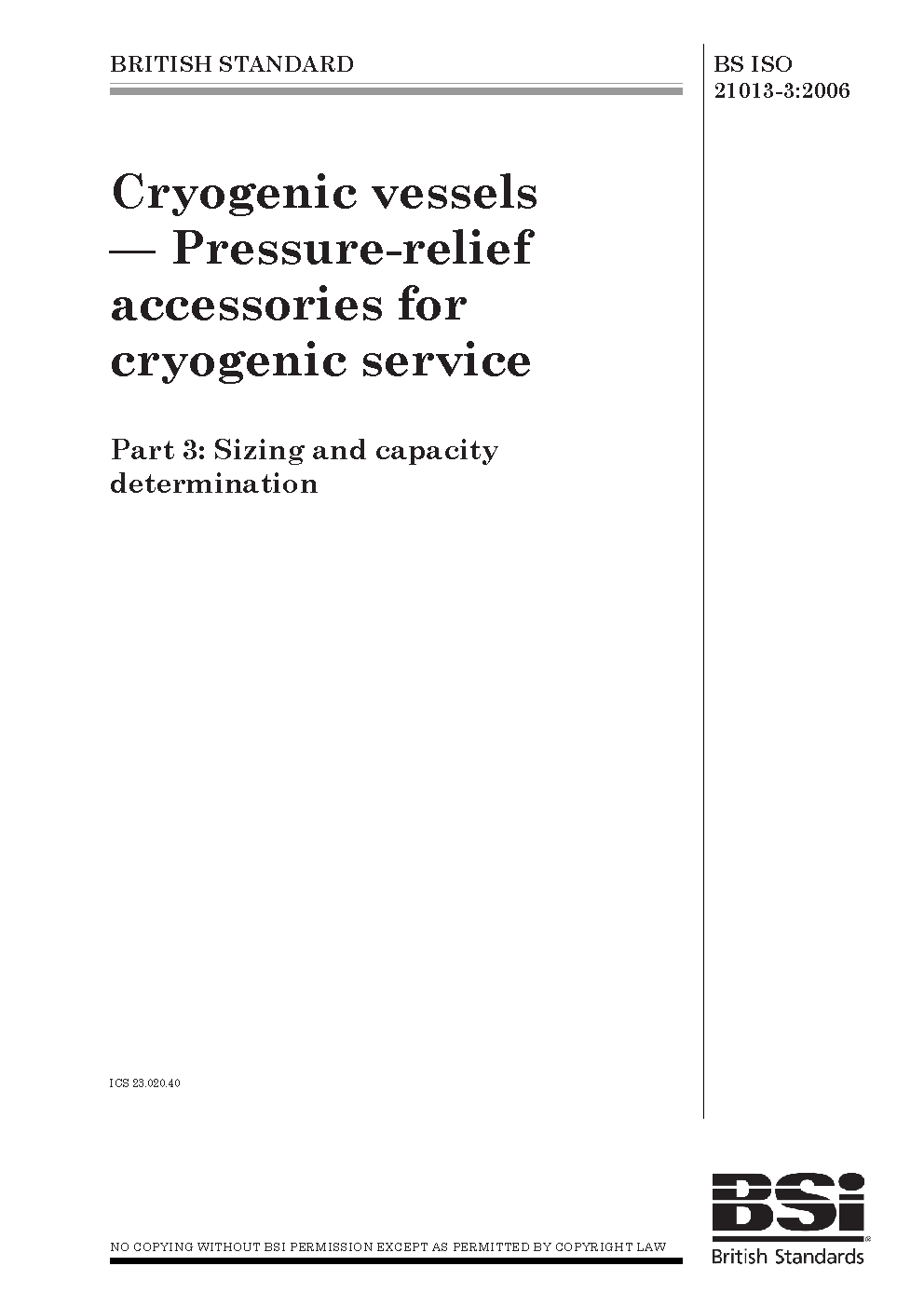 Cryogenic vessels. Pressure-relief accessories for cryogenic service Sizing and capacity determination