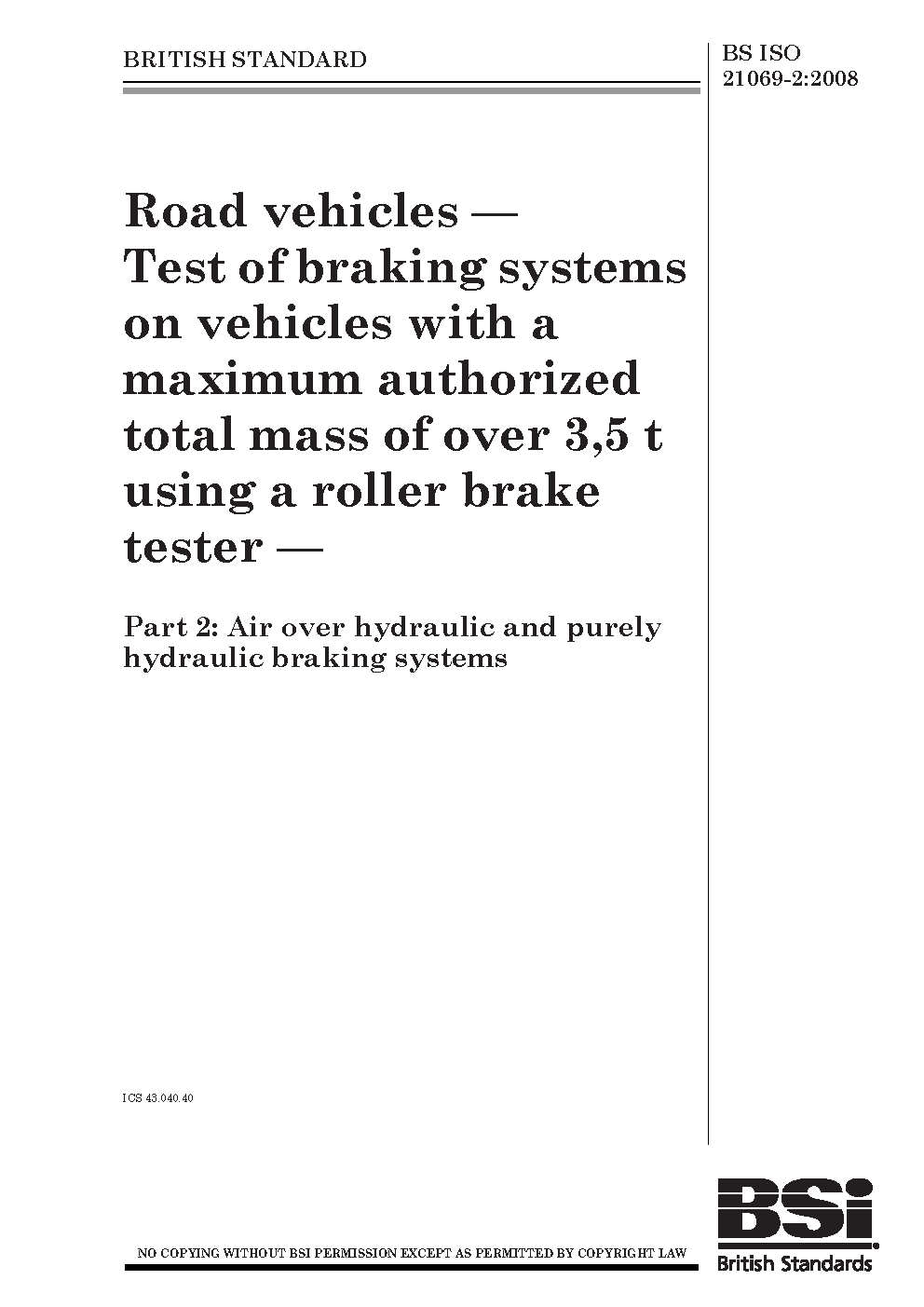 Road vehicles. Test of braking systems on vehicles with a maximum authorized total mass over 3,5 t using roller brake tester Air hydraulic and purely