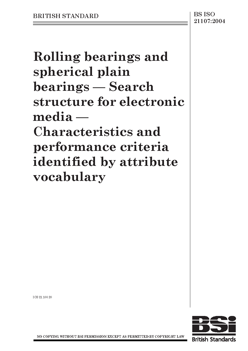 Rolling bearings and spherical plain bearings. Search structure for electronic media. Characteristics and performance criteria identified by property vocabulary