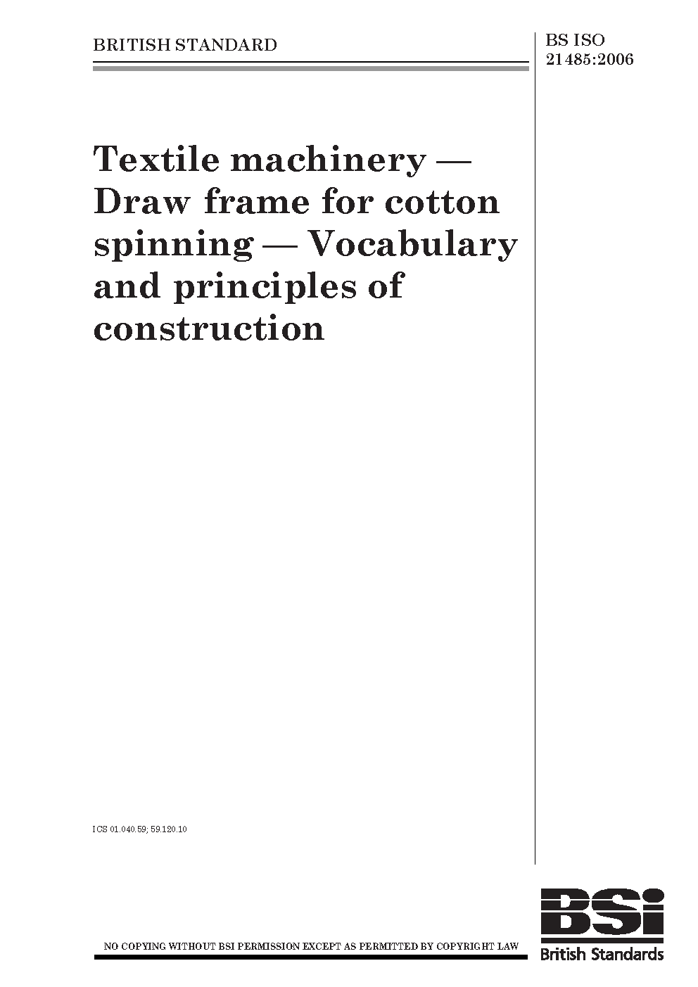 Textile machinery. Draw frame for cotton spinning. Vocabulary and principles of construction