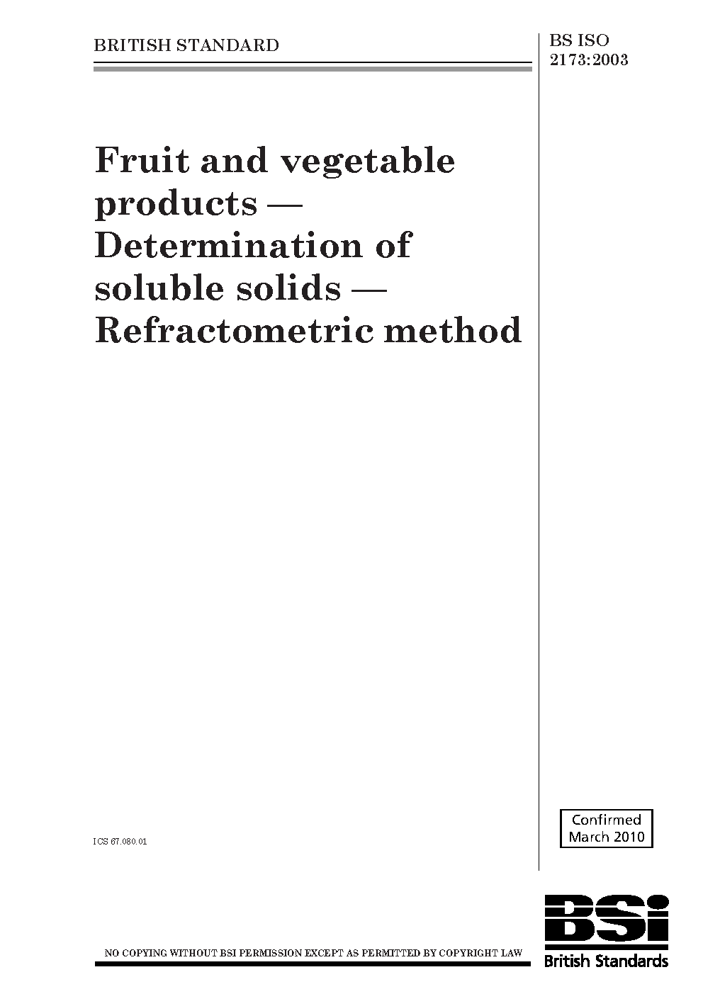 Fruit and vegetable products. Determination of soluble solids. Refractometric method