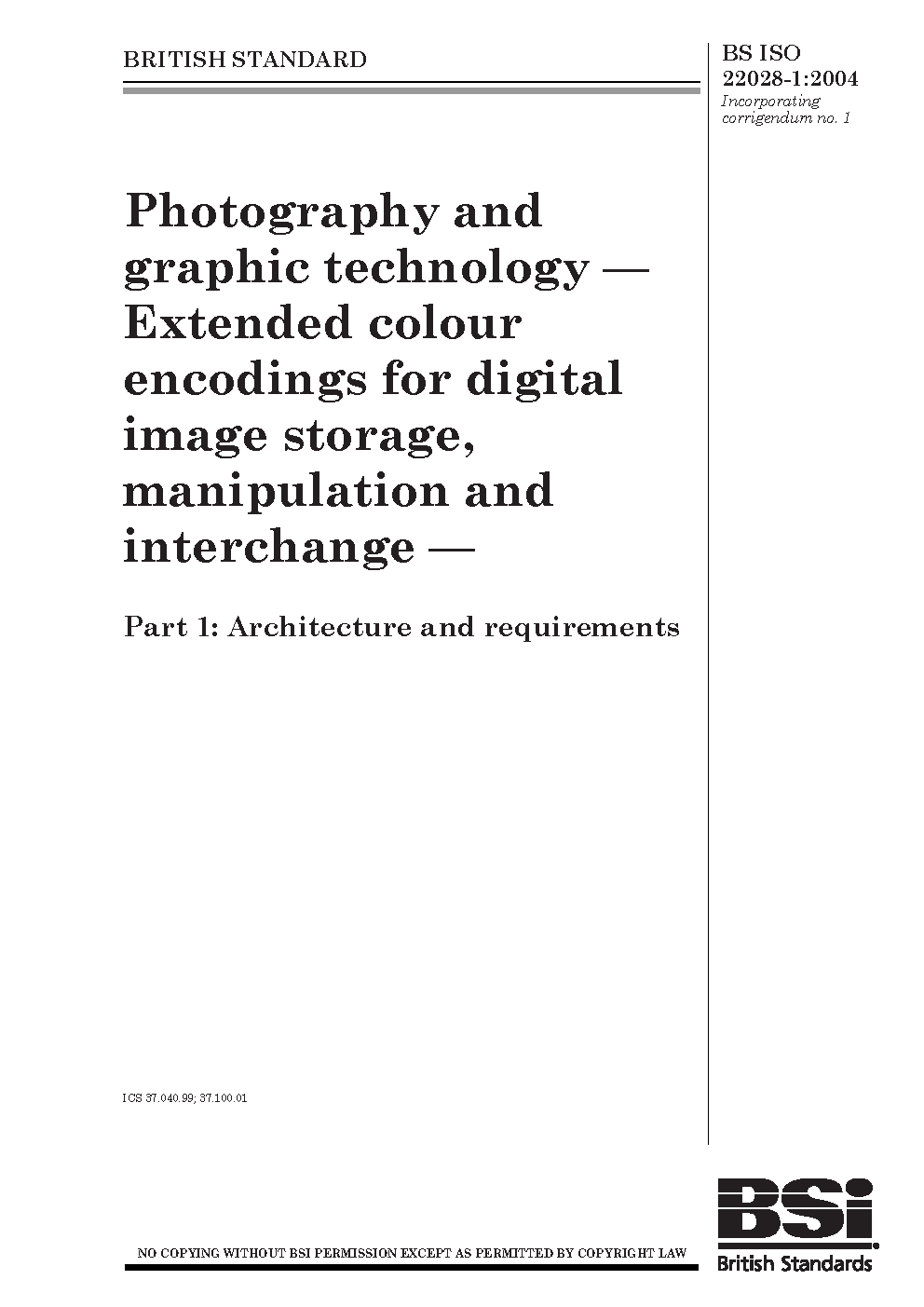 Photography and graphic technology. Extended colour encodings for digital image storage, manipulation interchange Architecture requirements