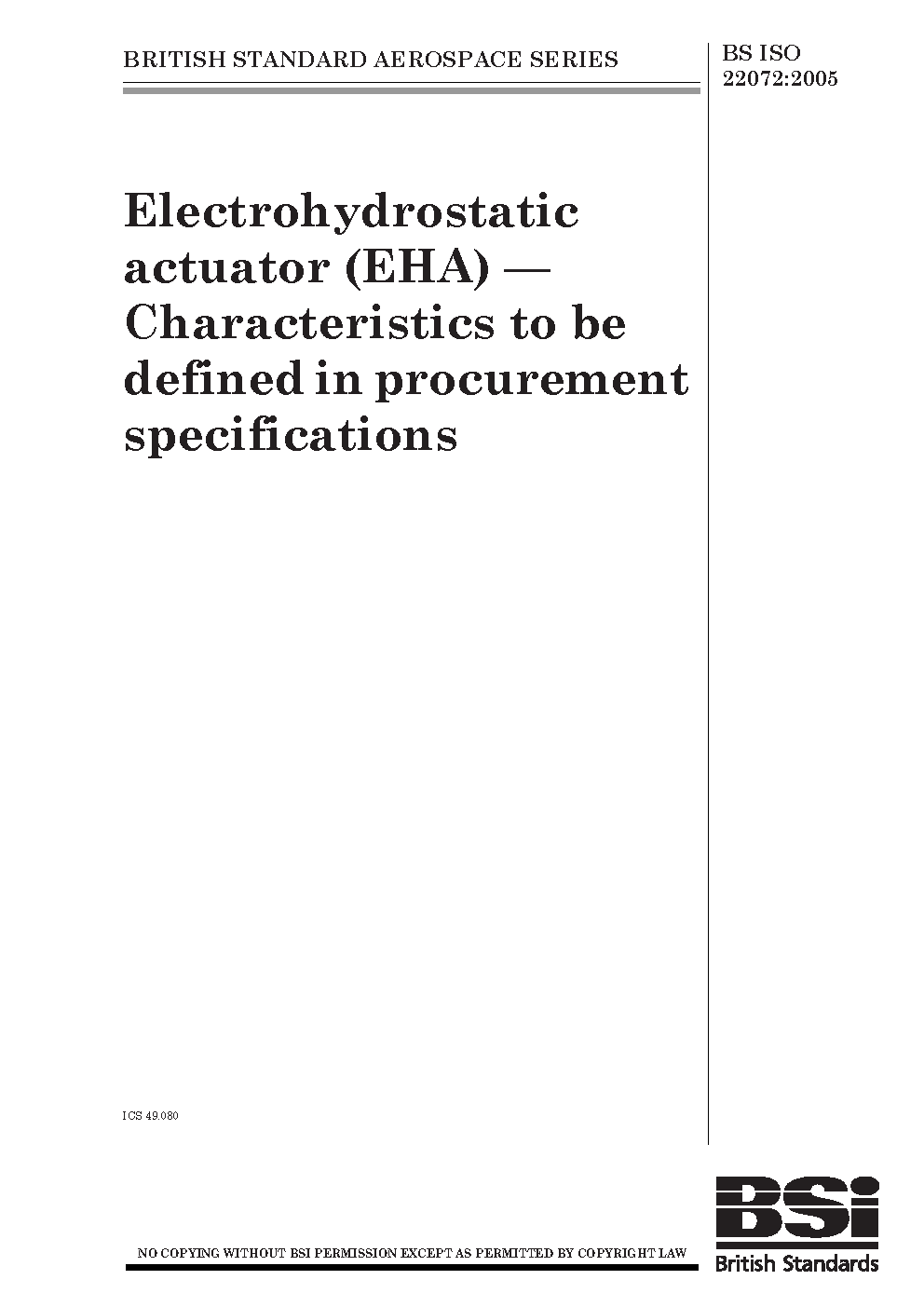 Electrohydrostatic actuator (EHA). Characteristics to be defined in procurement specifications