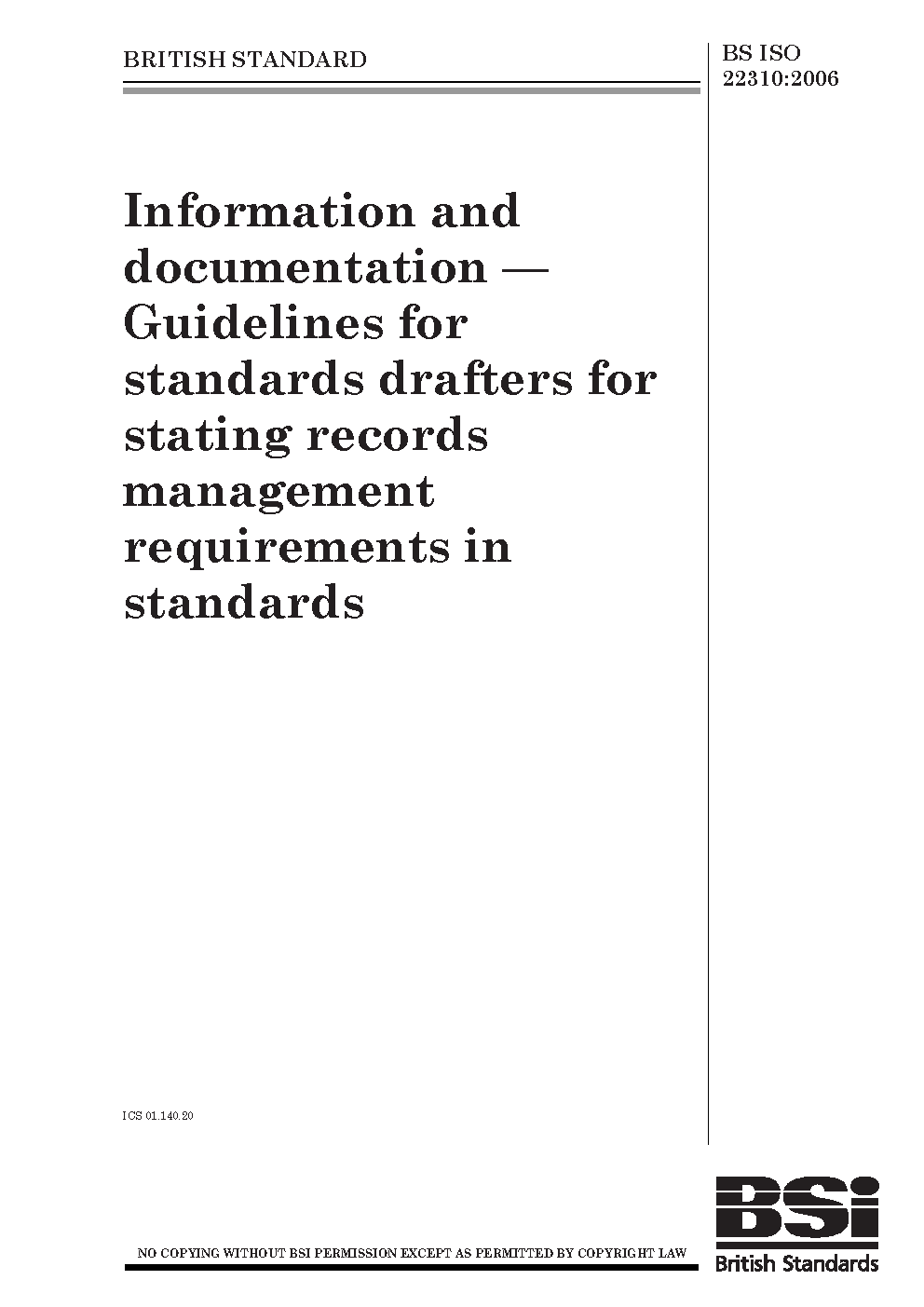 Information and documentation. Guidelines for standards drafters for stating records management requirements in standards
