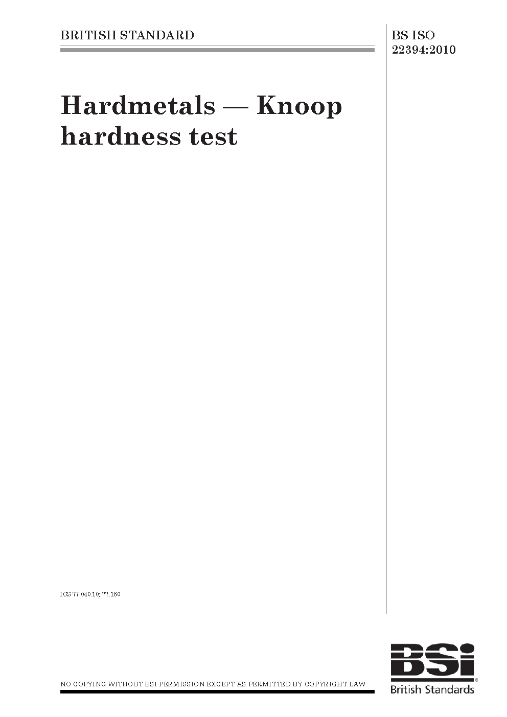 Knoop hardness measurement;Hardmetals;Hardness testing;Powder metallurgy;Test specimens;Test equipment;Hardness measurement
