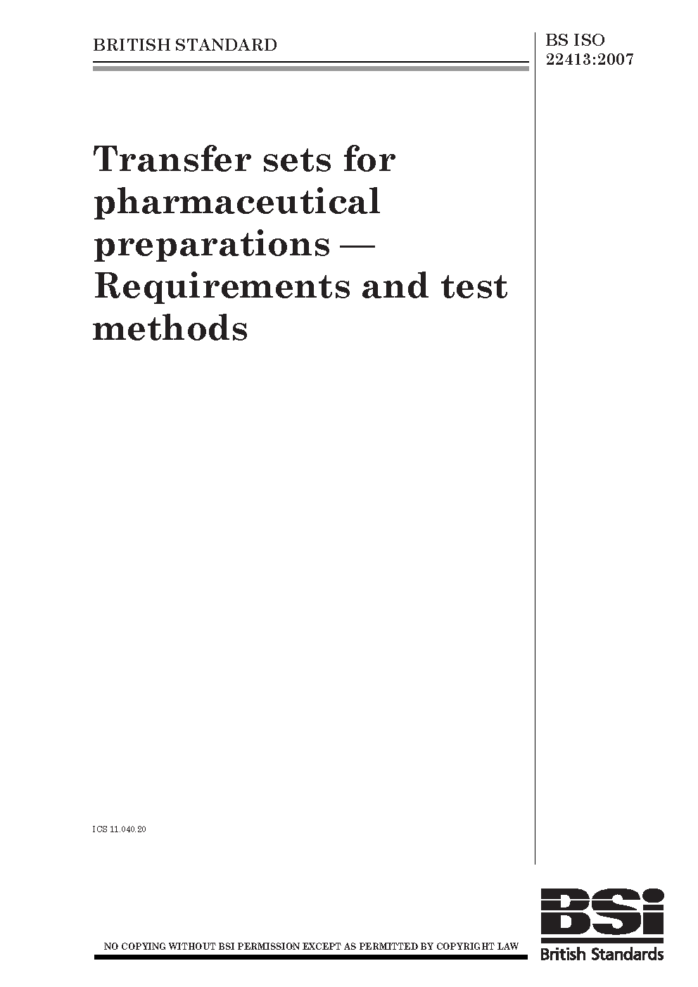 Transfer sets for pharmaceutical preparations. Requirements and test methods