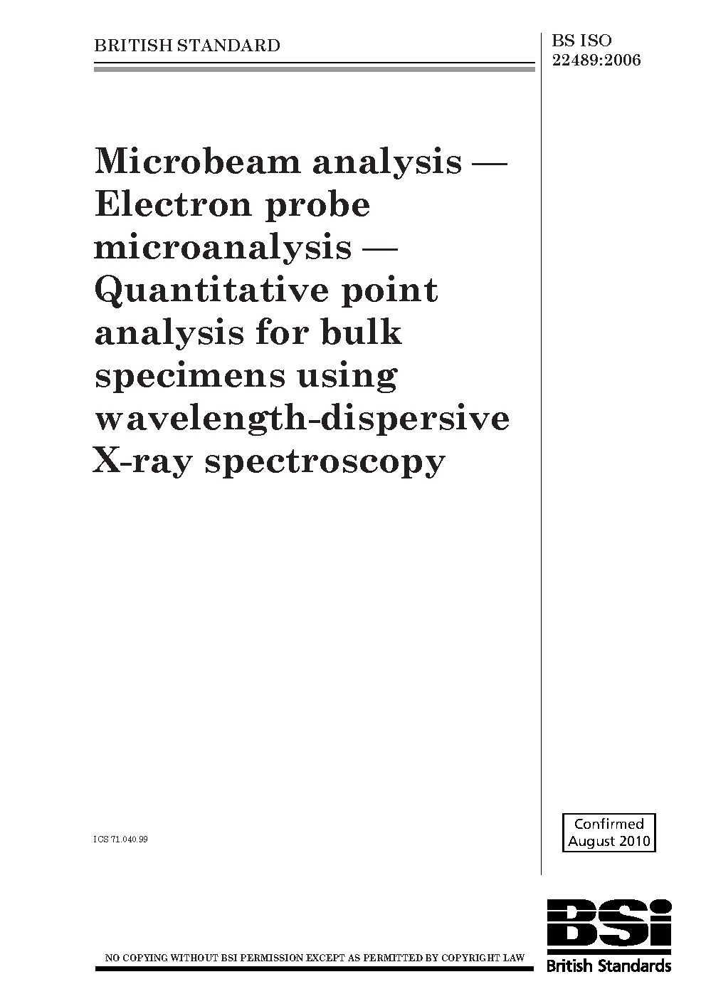 Microbeam analysis. Electron probe microanalysis. Quantitative point analysis for bulk specimens using wavelength-dispersive X-ray spectroscopy