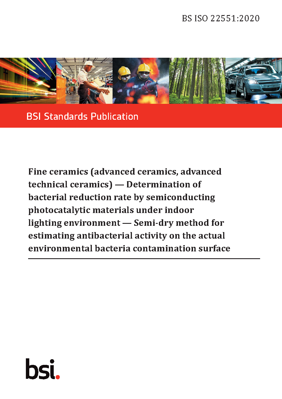Fine ceramics (advanced ceramics, advanced technical ceramics). Determination of bacterial reduction rate by semiconducting photocatalytic materials under indoor lighting environment. Semi-dry method for estimating antibacterial activity on the actual environmental bacteria contamination surface