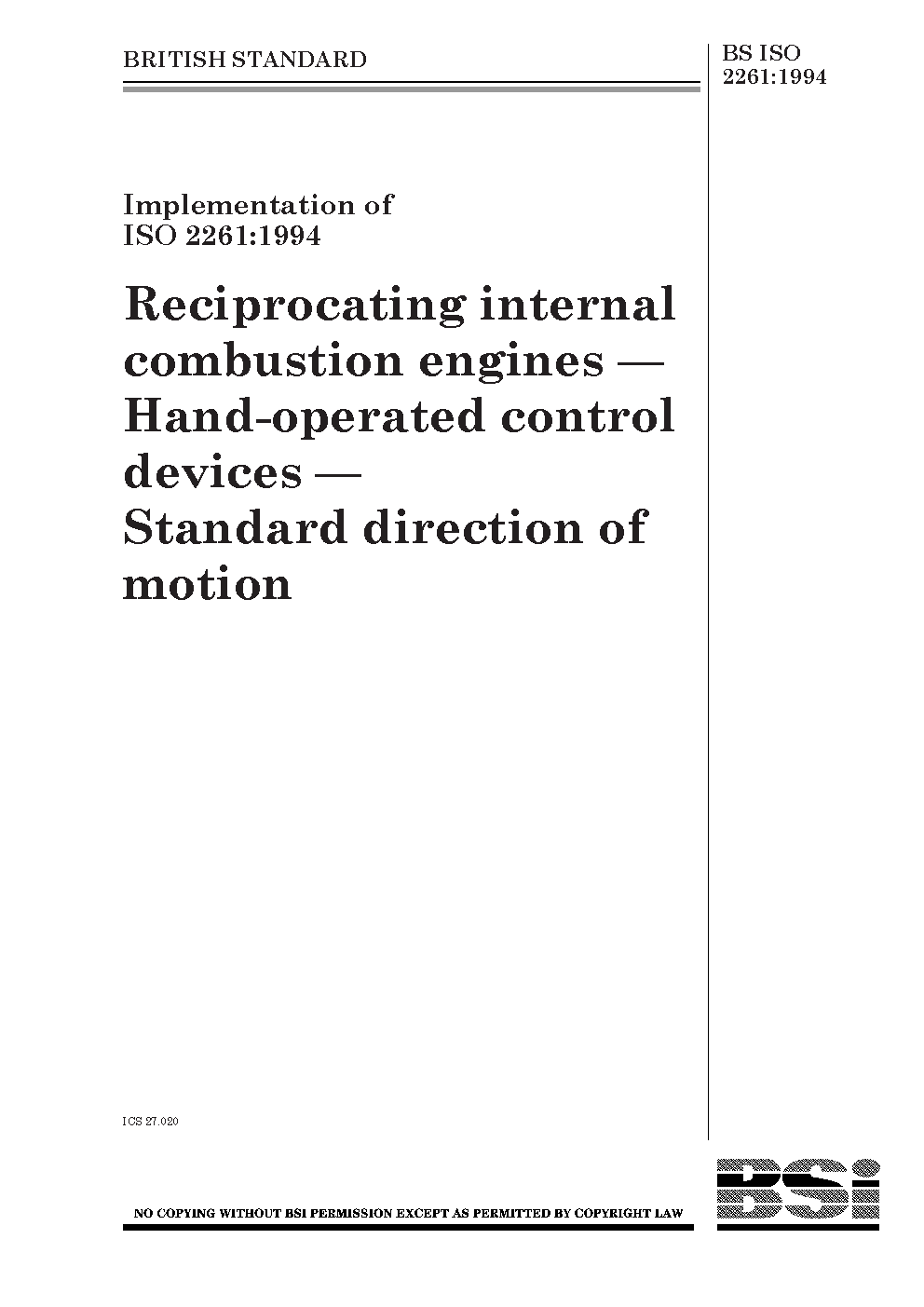 Reciprocating internal combustion engines. Hand-operated control devices. Standard direction of motion