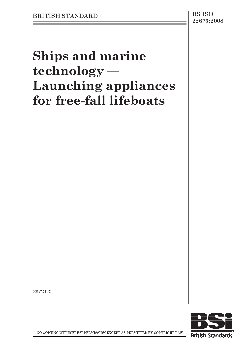 Ships and marine technology. Launching appliances for free-fall lifeboats