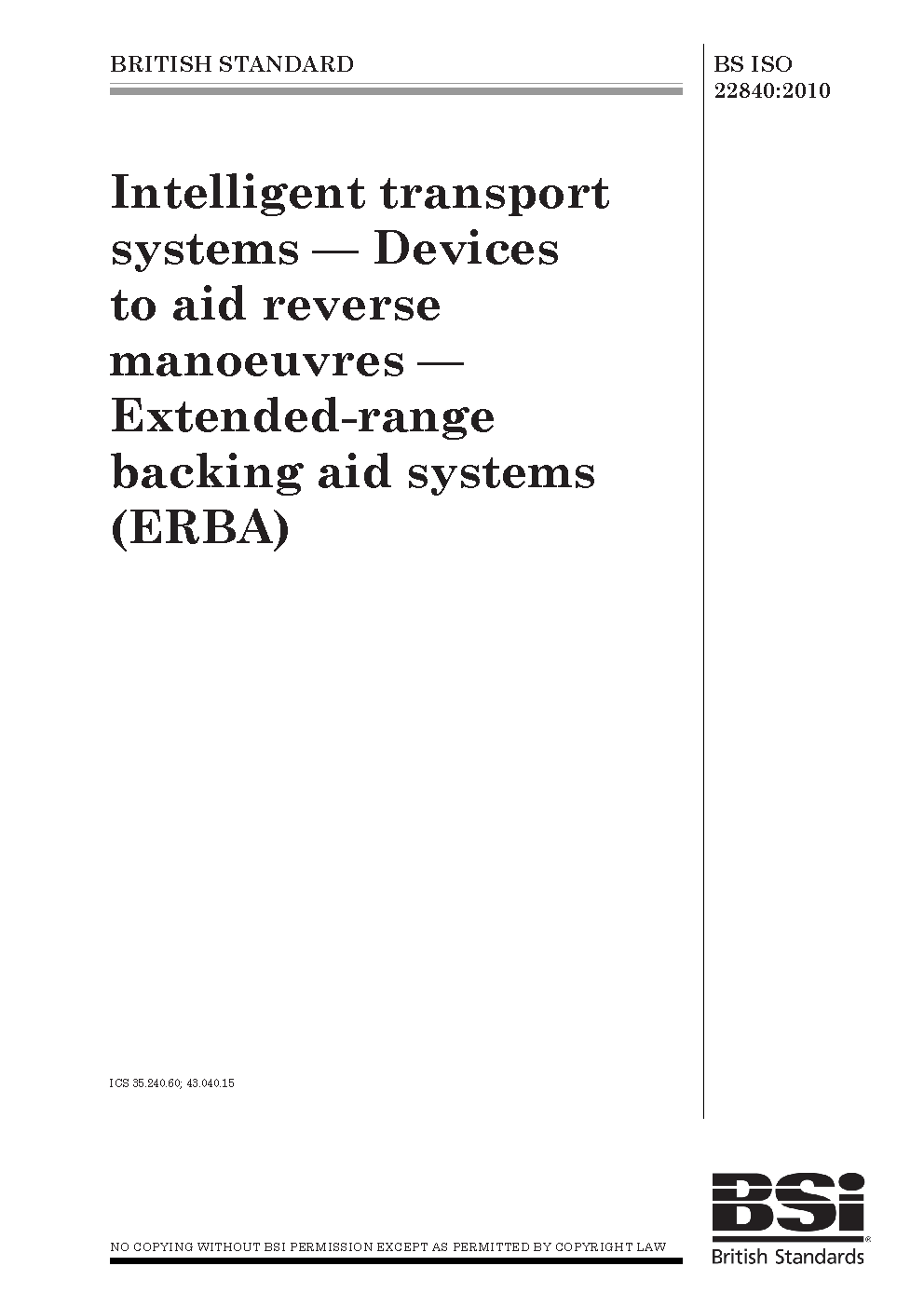 Intelligent transport systems. Devices to aid reverse manoeuvres. Extended-range backing aid systems (ERBA)