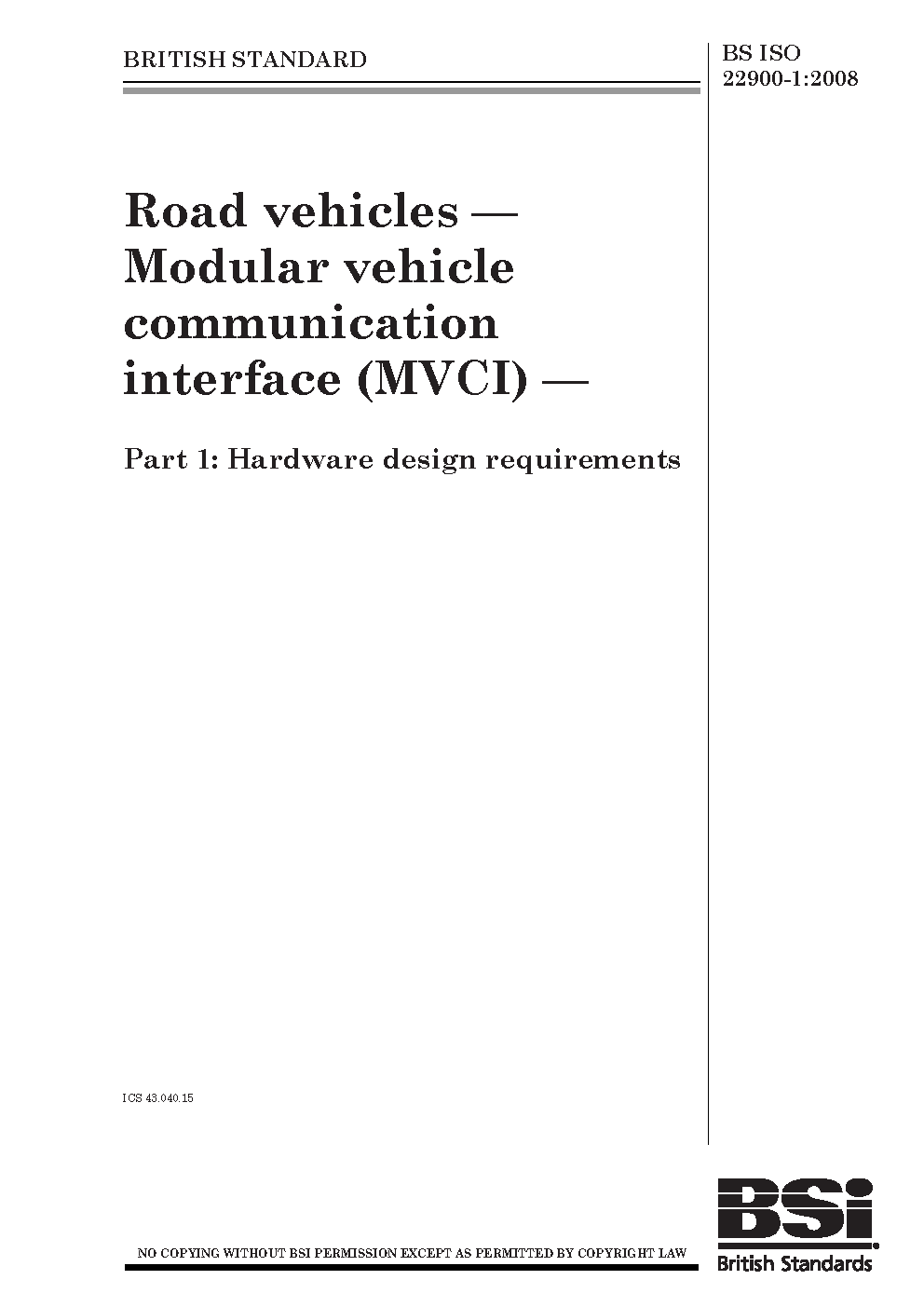Road vehicles. Modular vehicle communication interface (MVCI) Hardware design requirements