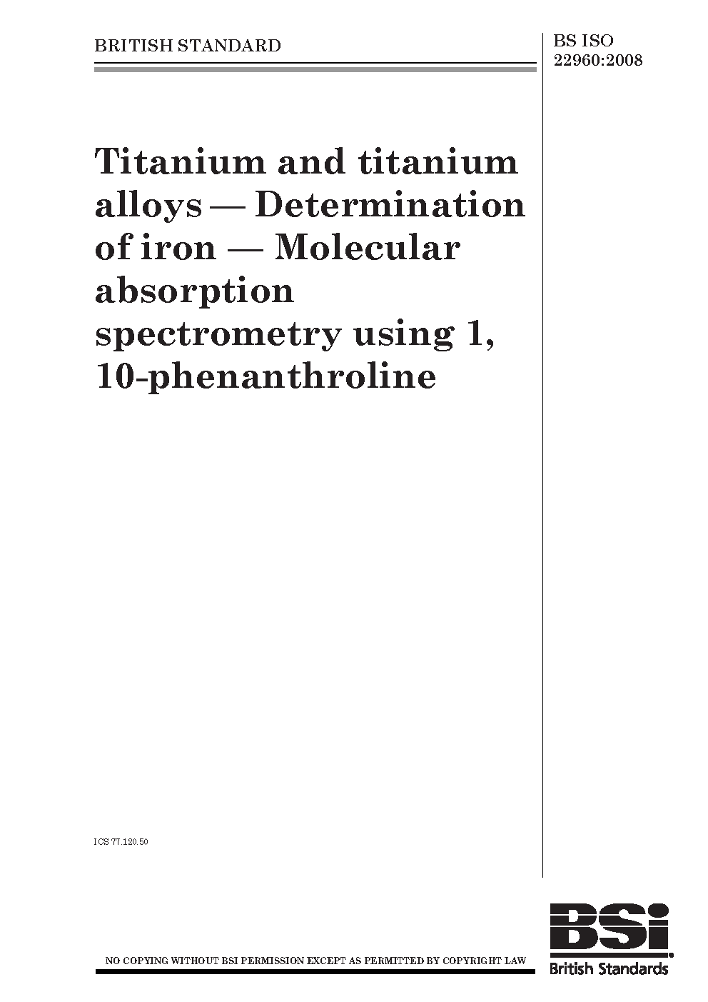 Iron;Chemical analysis and testing;Molecular absorption spectrophotometry;Absorption spectrophotometry;Determination of content;Titanium;Titanium alloys